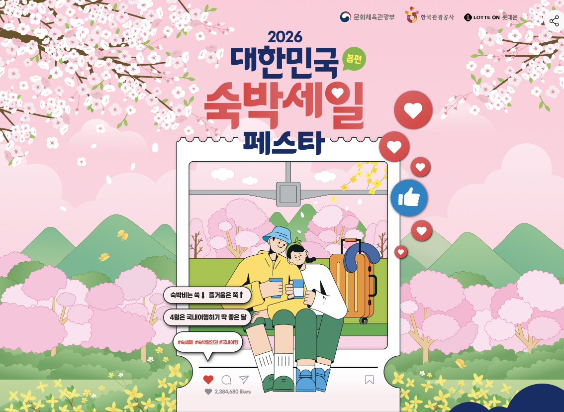 롯데온 숙박세일페스타는 정부와 협력하여 진행되는 숙박 할인 이벤트입니다.